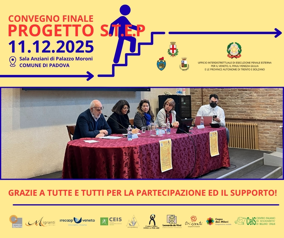 Ieri, giovedì 11 dicembre, nella Sala Anziani del Comune di Padova, si è svolto il convegno finale di S.T.E.P., progetto a cui abbiamo lavorato da ente capofila e che in tre anni di attività ha raggiunto traguardi importanti, generato collaborazioni e consolidato pratiche e lanciato nuove sfide per il futuro. Ecco qualche dato conclusivo sul progetto: